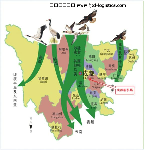 成都新機場與四川候鳥遷徙通道關系示意圖。