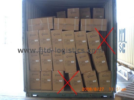貨物要有支撐,不能懸空,盡量用小箱的貨物填滿縫隙。Any cargo must be put on an even surface, not much space under cargo, use the small CTN fill the little space.