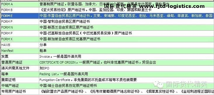 2)根據我國與不同國家簽訂的雙邊或多變貿易協議,原產地證分為很多格式,比如針對發達國家的FORM A, 針對孟加拉國、印度、韓國、斯里蘭卡的FORM B,針對東盟國家的FORM E, 針對智利的FORM F,針對新西蘭的FORM N,針對新加坡的FORM X等。