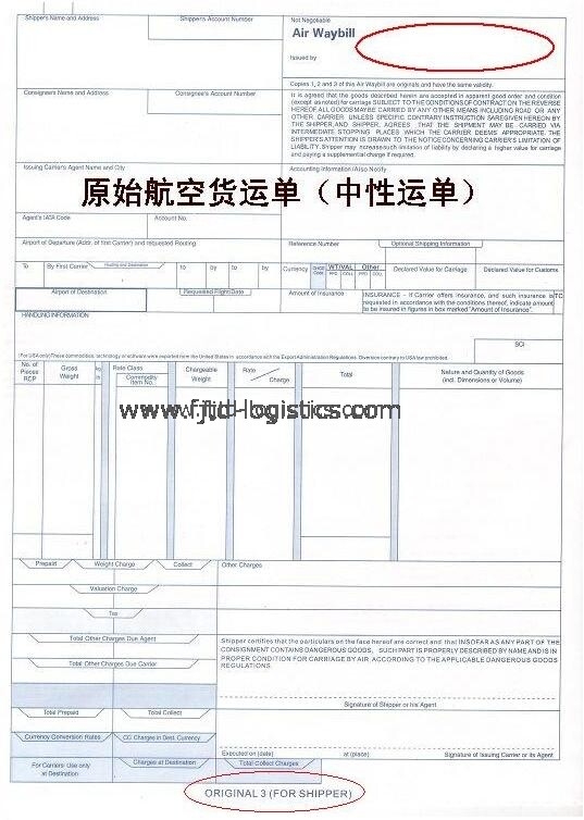 我們經常聽到“中性運單”,“中性運單”其實就是原始運單,即沒有承運人標志(如航空公司名稱、Logo、地址)的運單。