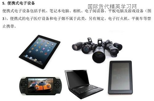 便攜式電子設備包括手機、筆記本電腦、相機、電子閱讀器、平板電腦及游戲設備(圖3)。便攜式的電子醫療設備和電子煙不屬于此類,另有規定。電子打火機、平衡車等禁止攜帶。