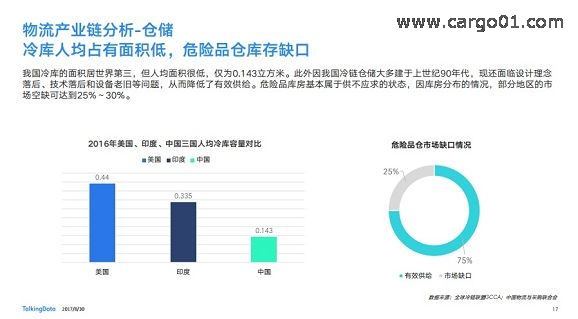 我國冷庫的面積居世界第三,但人均面積很低,僅為0.143立方米。此外因我國冷鏈倉儲大多建于上世紀90年代,現還面臨設計理念落后、技術落后和設備老舊等問題,從而降低了有效供給。危險品庫房基本屬于供不應求的狀態,因庫房分布的情況,部分地區的市場空缺可達到25%~30%。