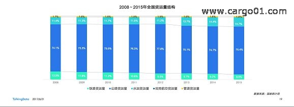 1)公路運輸占比最高,達到國內整體貨運量的75%