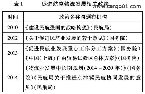 近年來,國務院、民航局和各地政府不斷出臺鼓勵航空物流發展的政策,極大促進了中國航空物流業的發展(見表1)。
