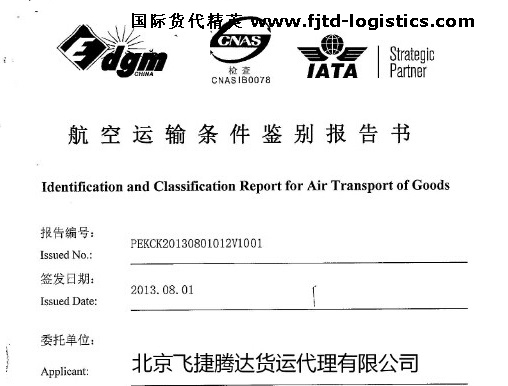 空運鑒定是通過專業的鑒定機構或公司(必須先取得民航局的認可資格)進行檢驗、檢測,由鑒定公司出具《航空運輸條件鑒別報告書》,航空公司和相關方根據《航空運輸條件鑒別報告書》判斷是普貨還是危險品。鑒定公司檢驗、檢測后,如果是普貨,就出普貨鑒定;如果是危險品,就出危險品鑒定。