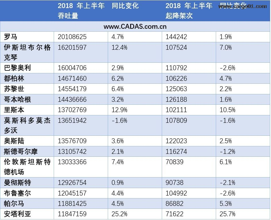 歐洲機(jī)場(chǎng)半年數(shù)據(jù)回顧:增長(zhǎng)速度減緩